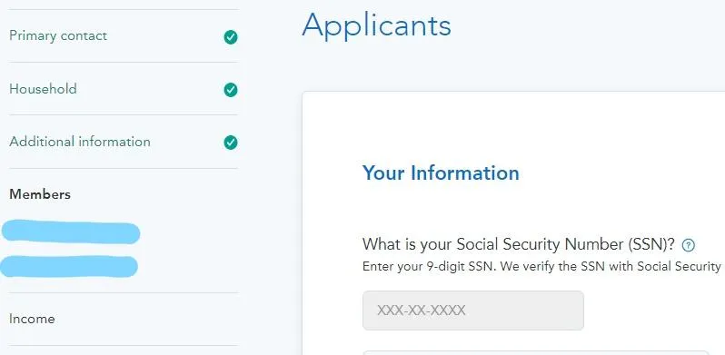 Please list the Full Name, DOB, Sex, Social Security Number and Relationship for any other family members applying for coverage (Spouse, child, etc). If not applicable, you can put NA below.